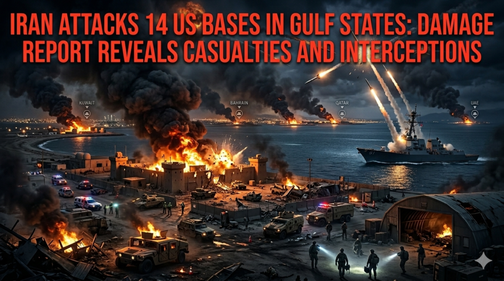 Dubai/Kuwait City/Manama – In one of the most extensive retaliatory operations since the conflict began, a new Iran attacks 14 US bases Gulf states damage report reveals the scope and impact of Tehran’s military response to the assassination of Supreme Leader Ayatollah Ali Khamenei. The Islamic Revolutionary Guard Corps (IRGC) launched coordinated missile and drone strikes against American military installations across five Gulf nations, with varying degrees of success and damage.